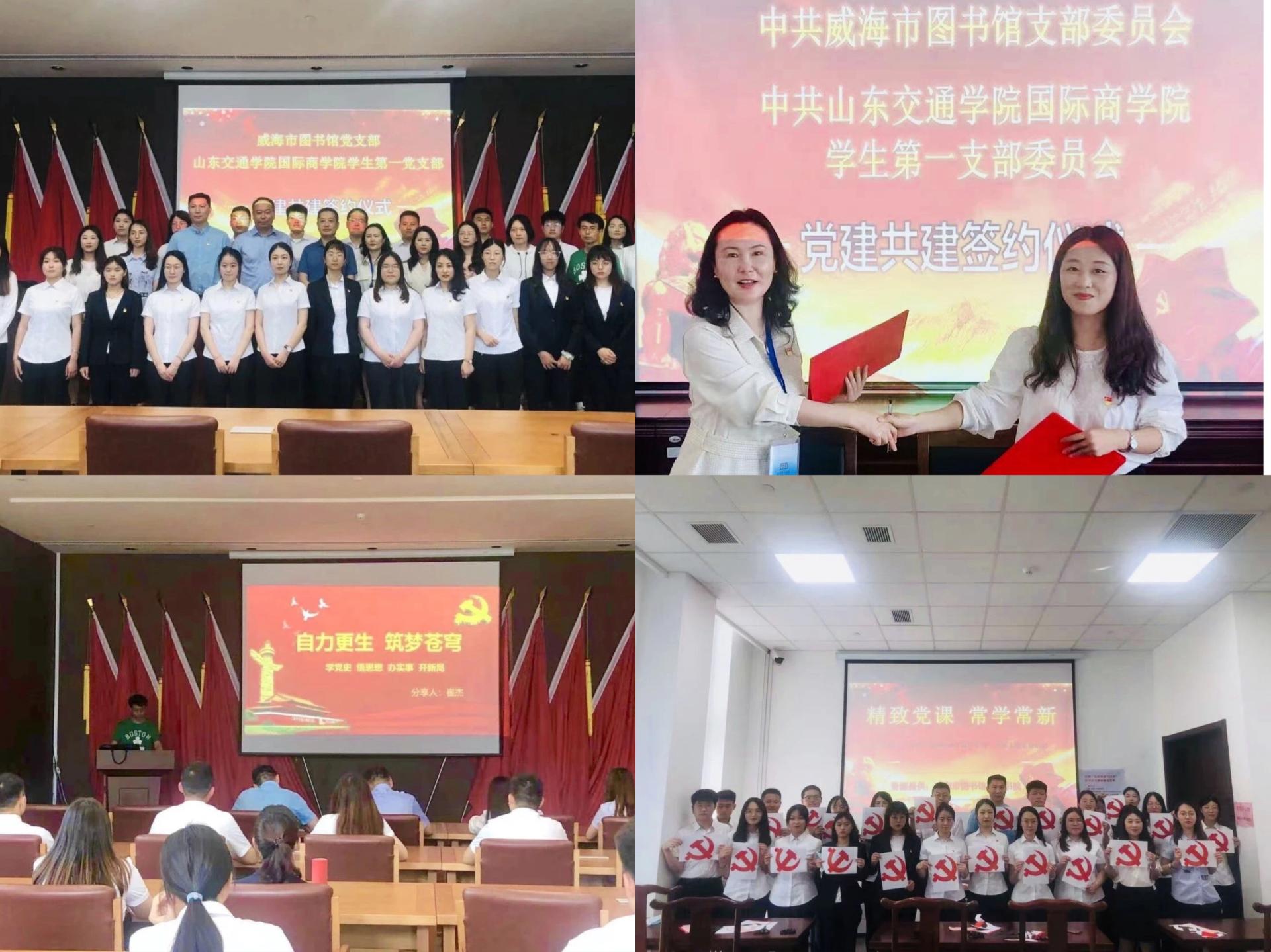 为进一步推动党史学习教育走深走实,创新党建活动形式,加强校地合作,近日,国际商学院学生第一党支部与威海市图书馆党支部举行结对共建签约仪式并共同开展主题党日活动。威海市图书馆馆长时庆安、国际商学院党总支书记刘佳军、党总支副书记庄伟、共建党支部书记及党员代表共30余人参加本次活动。